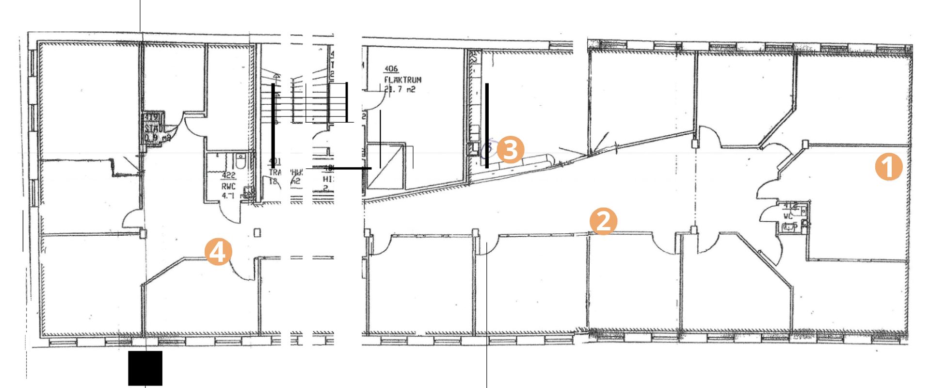 Gemensamt kök för alla hyresgäster finns i den långa korridoren till vänster. Köket är välutrustat och du har fri tillgång till all utrustning som finns där inne, inklusive kyl, frys och mikrovågsugn. Alla tar hand om sin egen disk och vi hjälps gemensamt åt att tömma diskmaskinen, vid behov. Om du inte har med dig egen lunch till mottagningen så är det bara att gå ut på Repslagaregatan utanför mottagningen - området kryllar av restauranger.